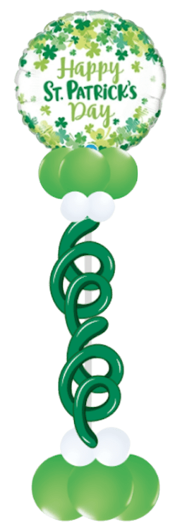 A striking and elegant decoration that adds height and sophistication to your event. This tall centerpiece features a cluster of helium-filled balloons, arranged in a vertical design, tied with coordinating ribbon, and anchored with a decorative weight.