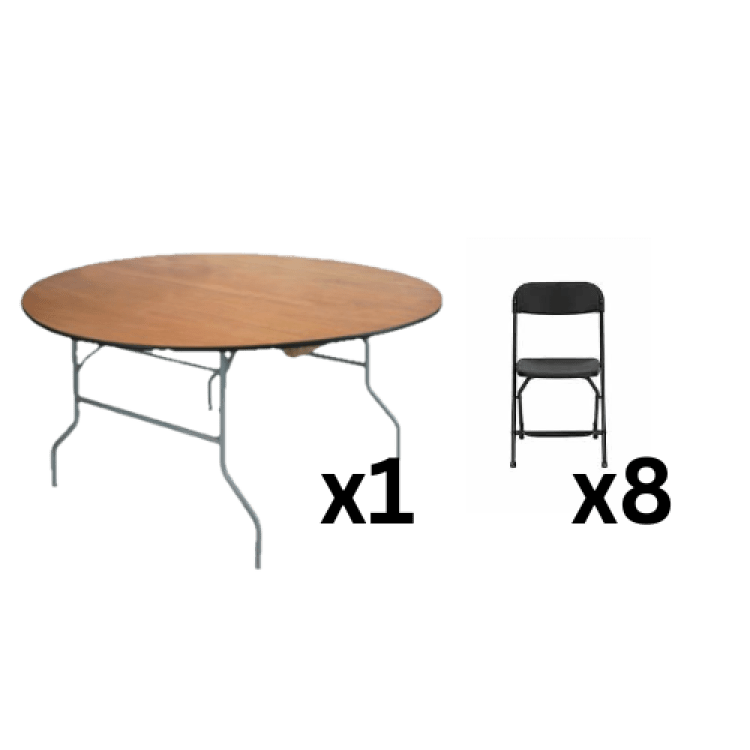 Black Folding Chair & 60 in Round Table Seating Package