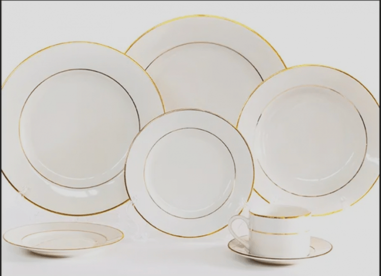 White+Dinner+Plate+w%2F+Double+Gold+Trim+%28Set+of+10%29